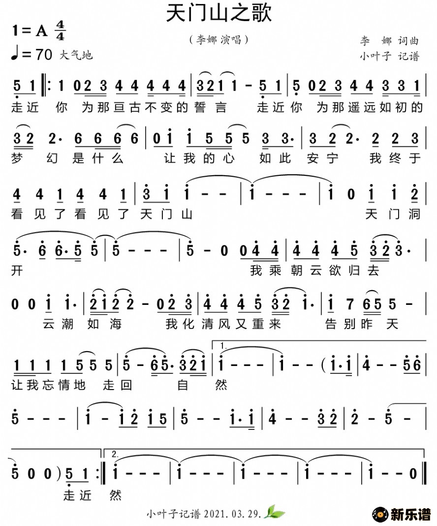 李娜演唱的天门山之歌歌词,天门山之歌简谱.
