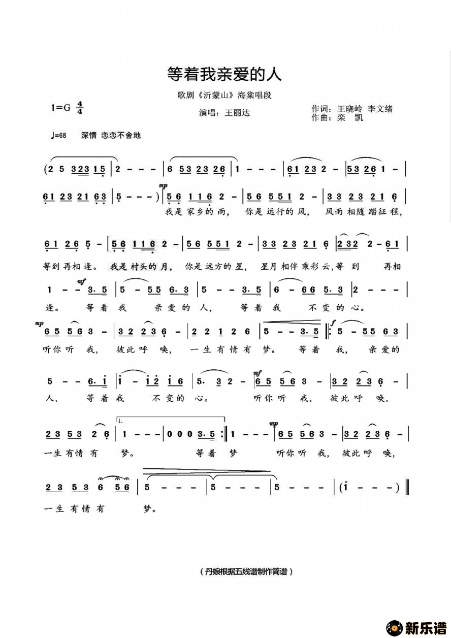 王丽达演唱的等着我亲爱的人简谱歌词,等着我亲爱的人简谱简谱.