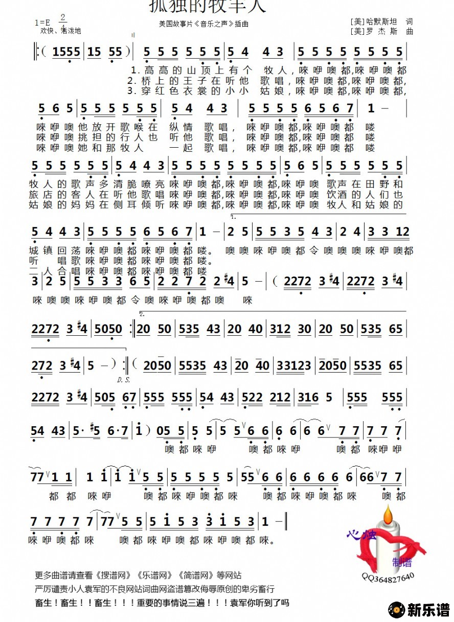 《孤独的牧羊人》简谱 朱逢博-心烛制谱