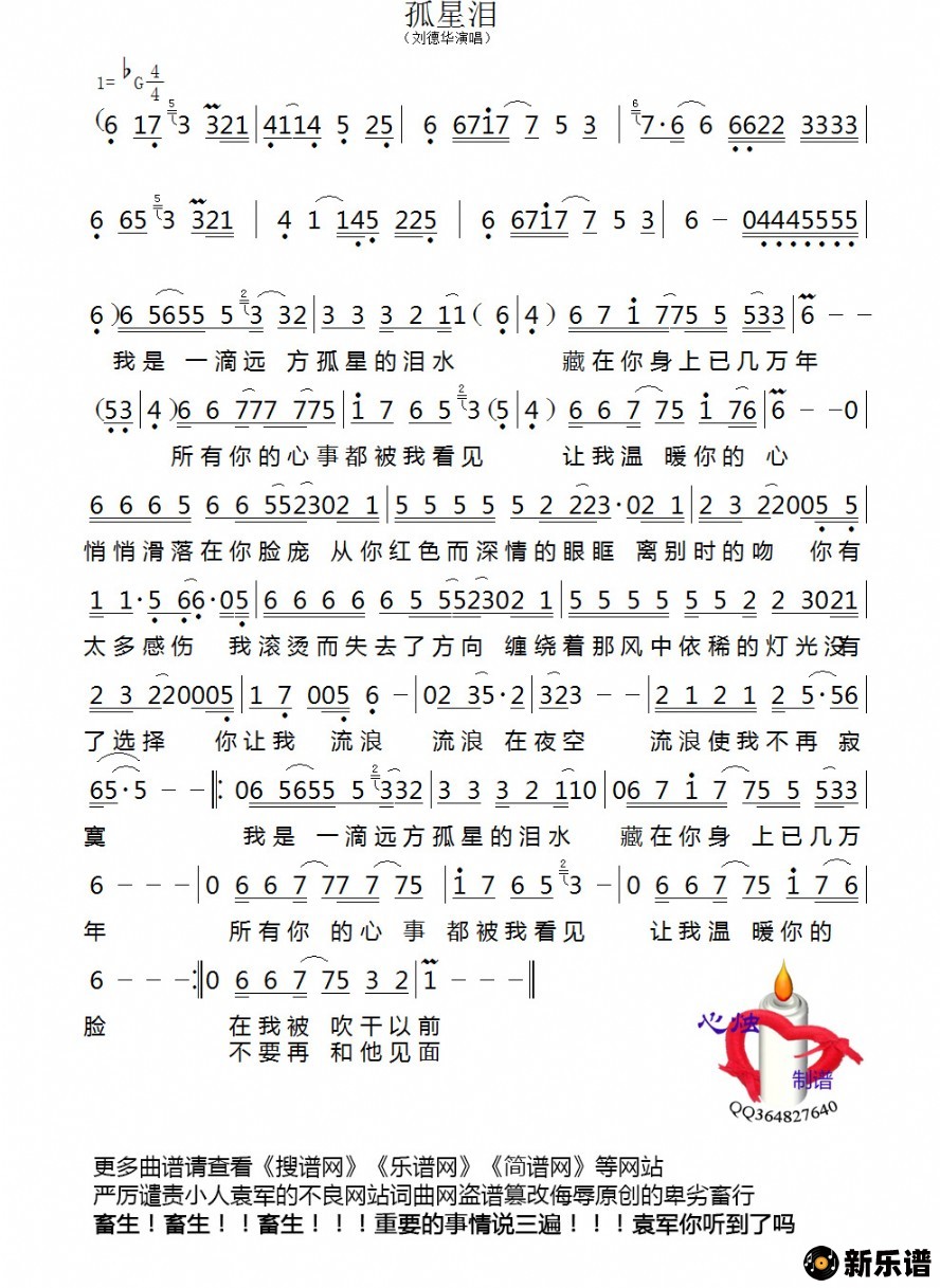 刘德华演唱的孤星泪歌词,孤星泪简谱.