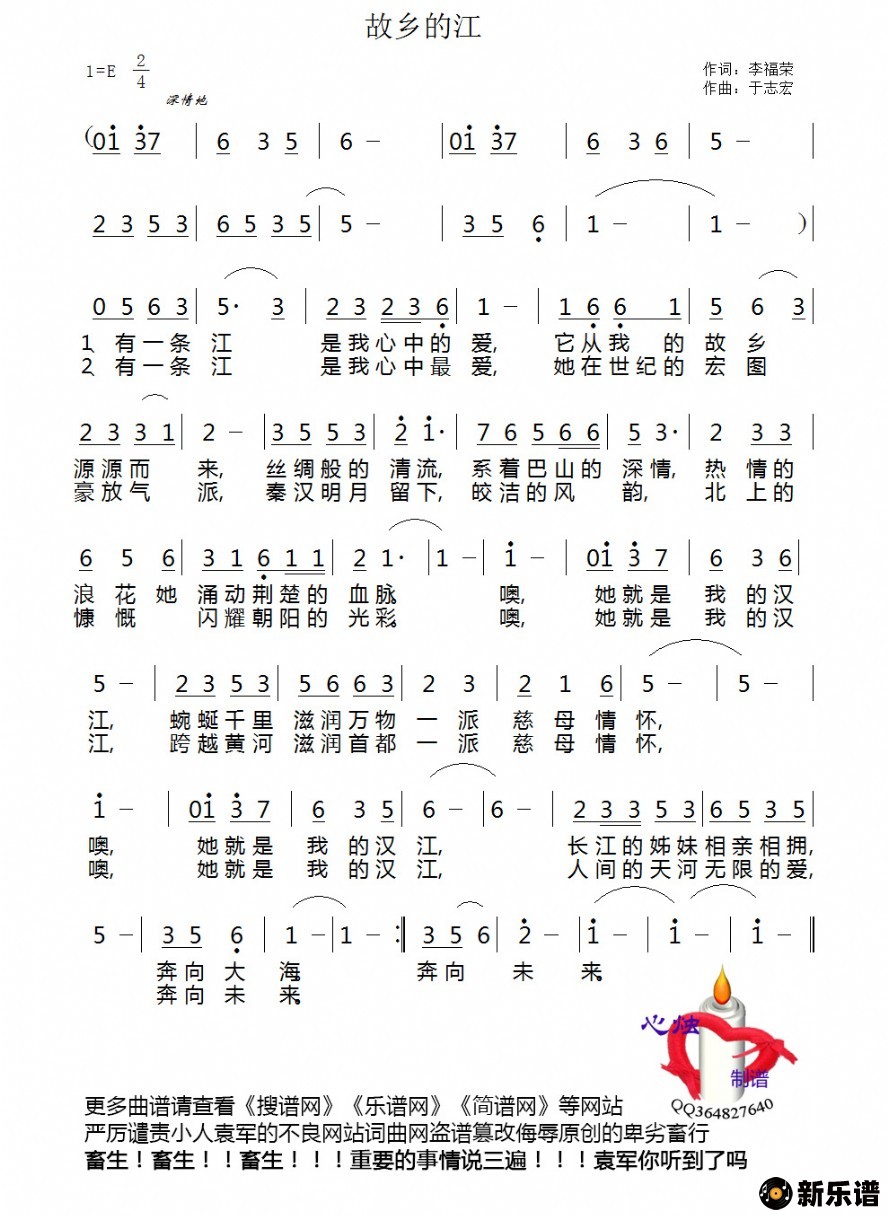 《故乡的江》简谱 佚名-心烛制谱