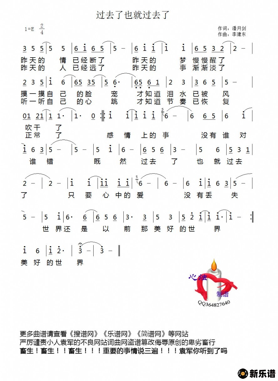 《过去了也就过去了》简谱 佚名-心烛制谱