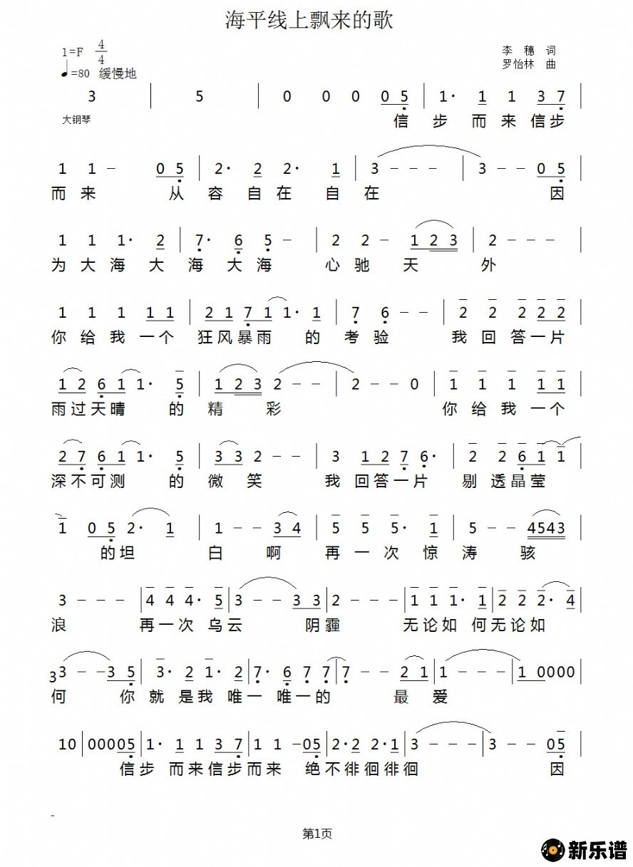 佚名演唱的海平线上飘来的歌歌词,海平线上飘来的歌简谱.