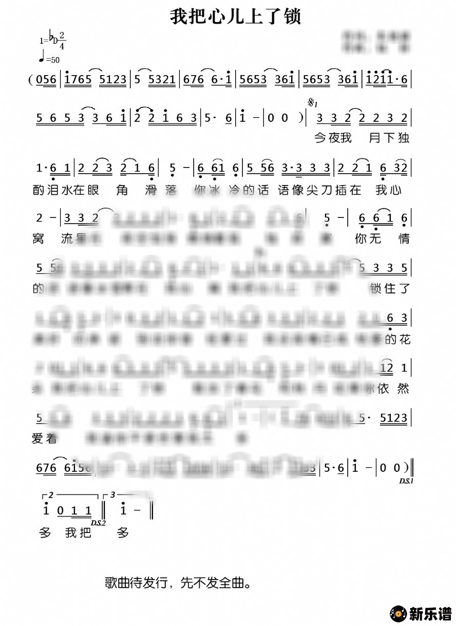 《我把心儿上了锁》简谱 -心烛制谱
