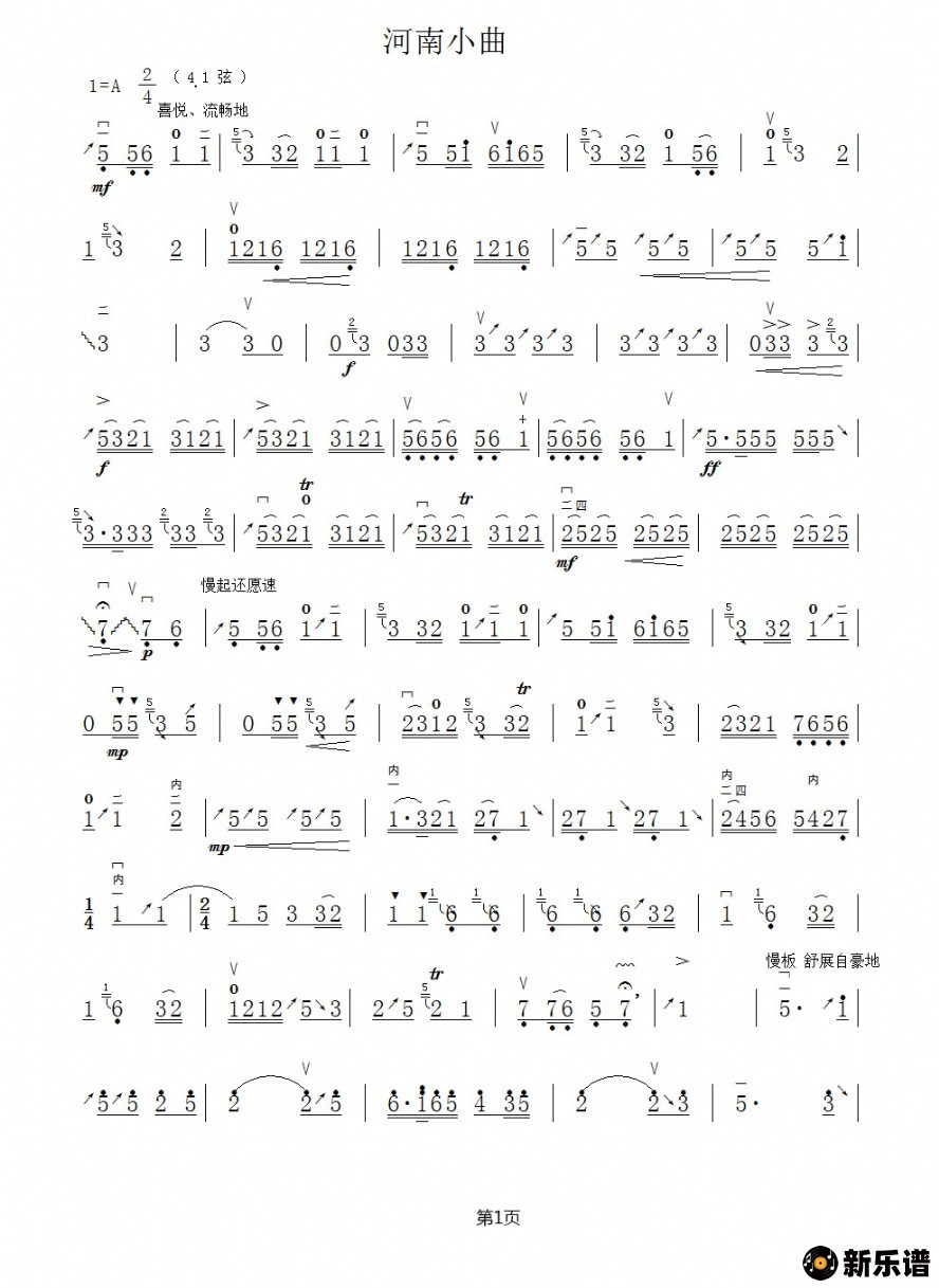 刘明源演唱的河南小曲歌词,河南小曲简谱.