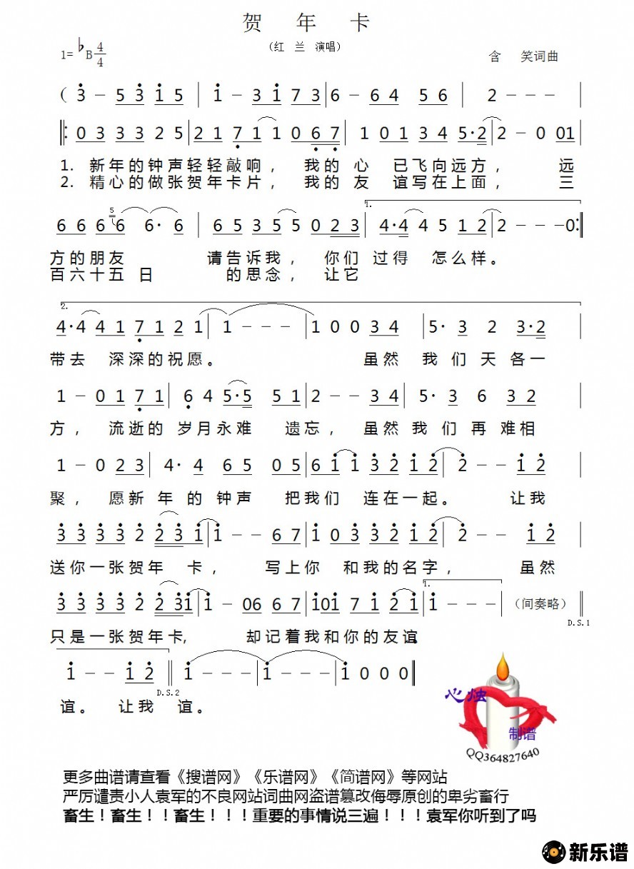 《贺年卡》简谱 红兰-心烛制谱