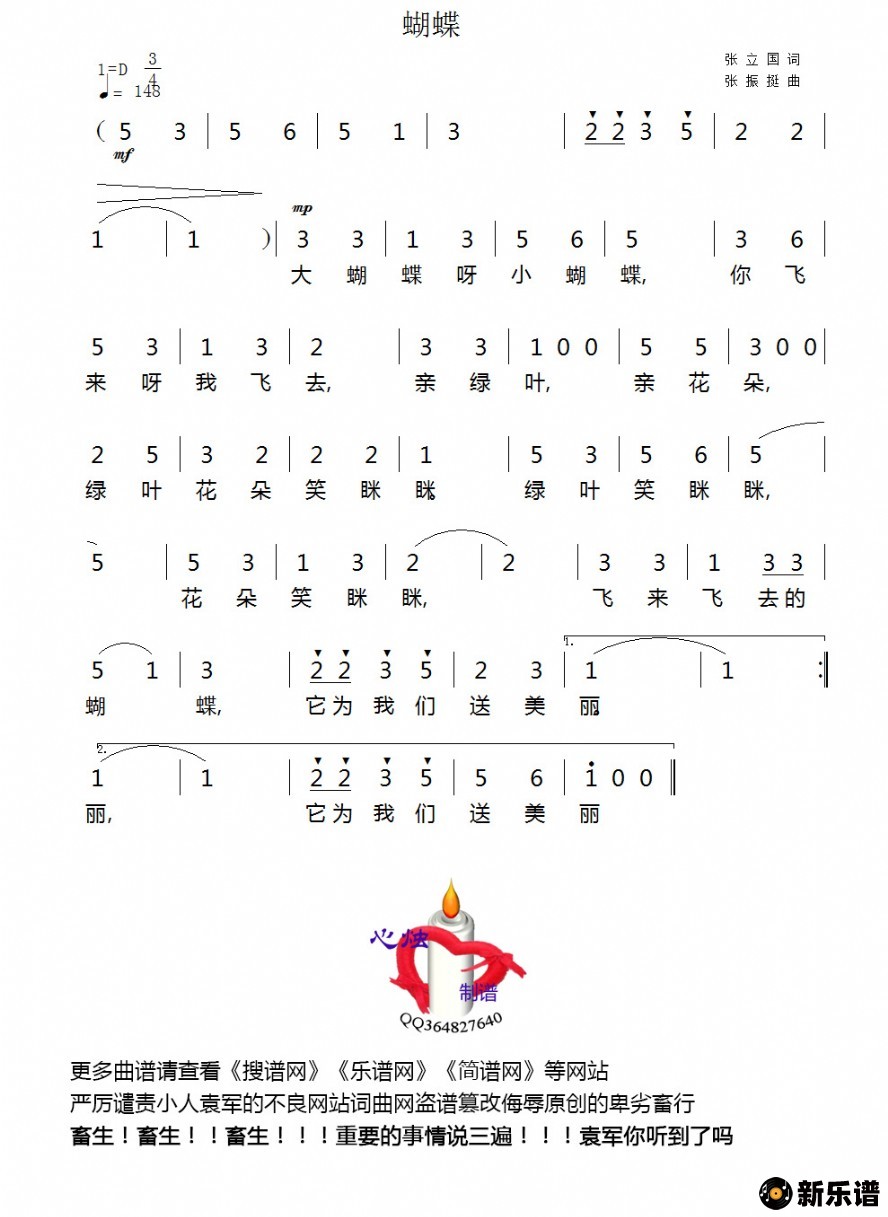 佚名演唱的蝴蝶歌词,蝴蝶简谱.
