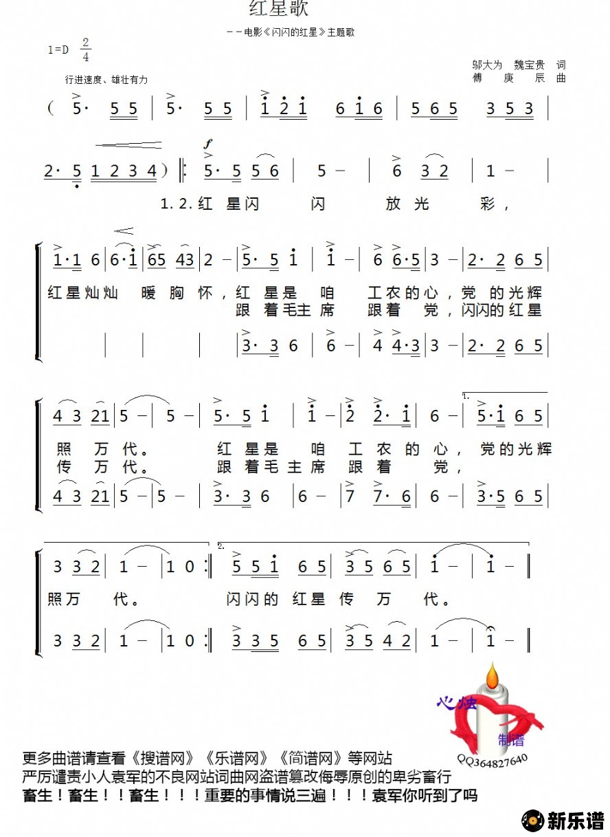 《红星歌》简谱 小蓓蕾-心烛制谱