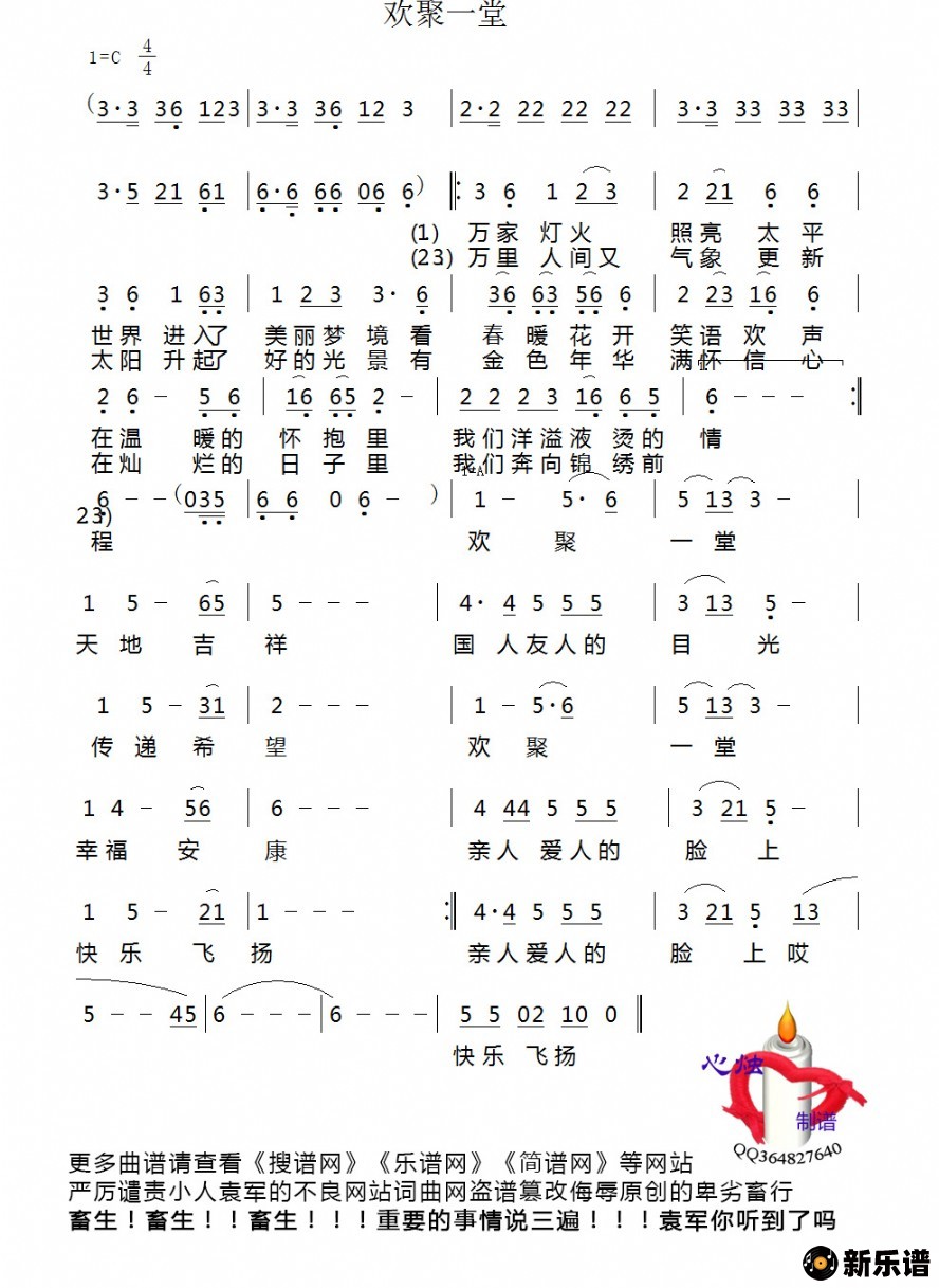 张也演唱的欢聚一堂歌词,欢聚一堂简谱.
