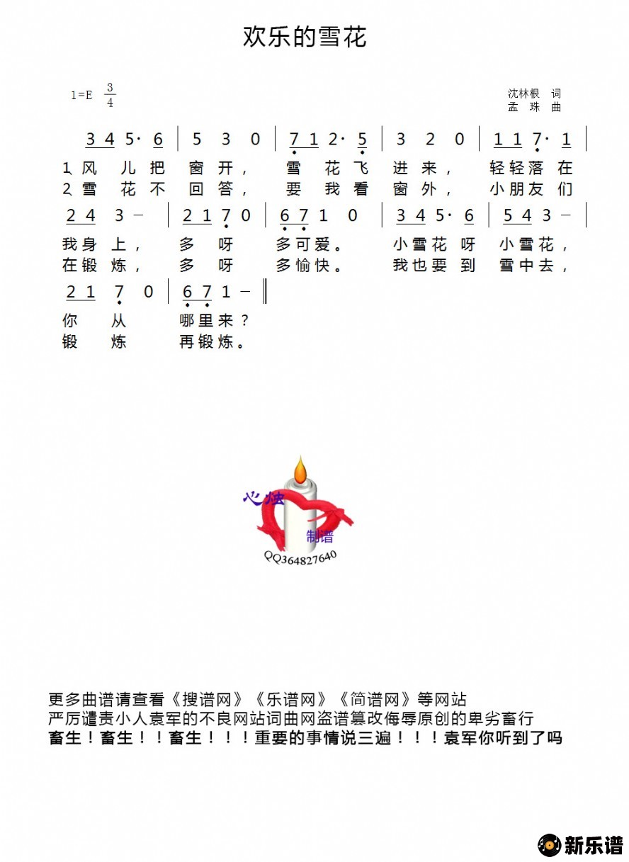 《欢乐的雪花》简谱 佚名-心烛制谱