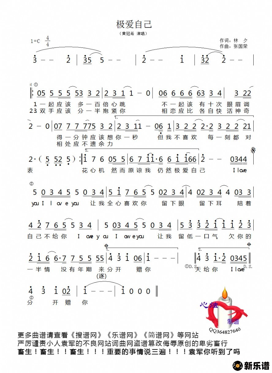 李易峰演唱的极爱自己歌词,极爱自己简谱.