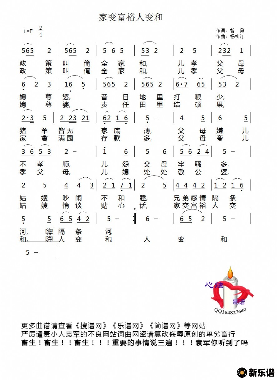 《家变富裕人变和》简谱 佚名-心烛制谱