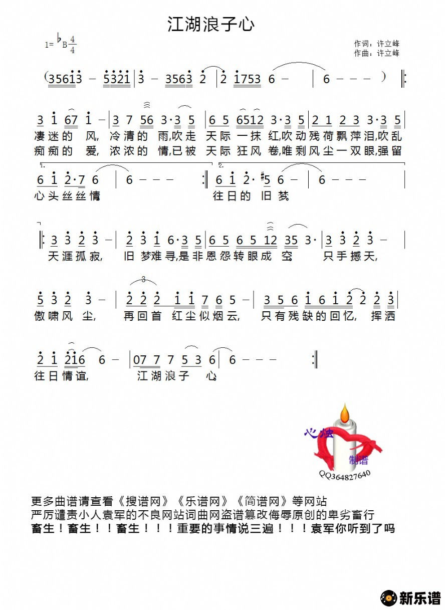 佚名演唱的江湖浪子心歌词,江湖浪子心简谱.