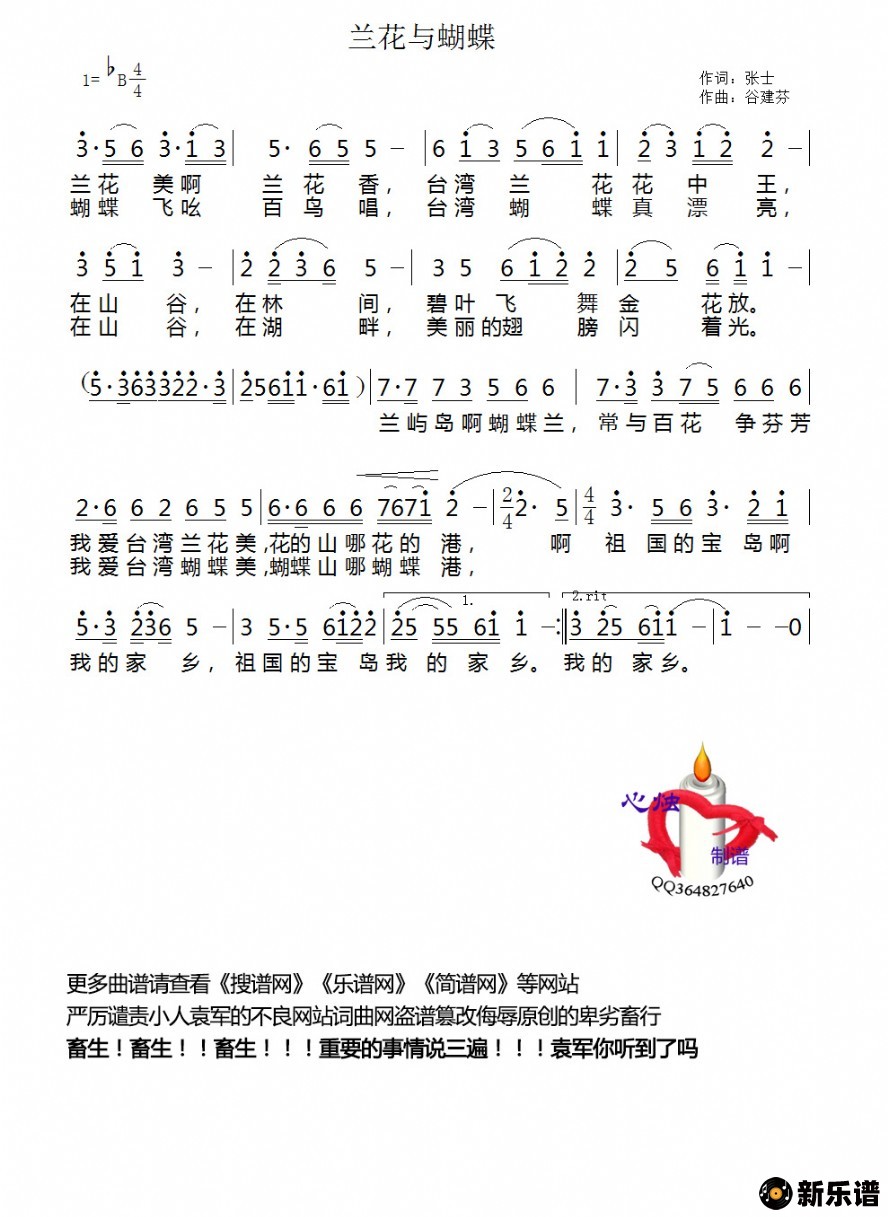 《兰花雨蝴蝶》简谱 张也-心烛制谱