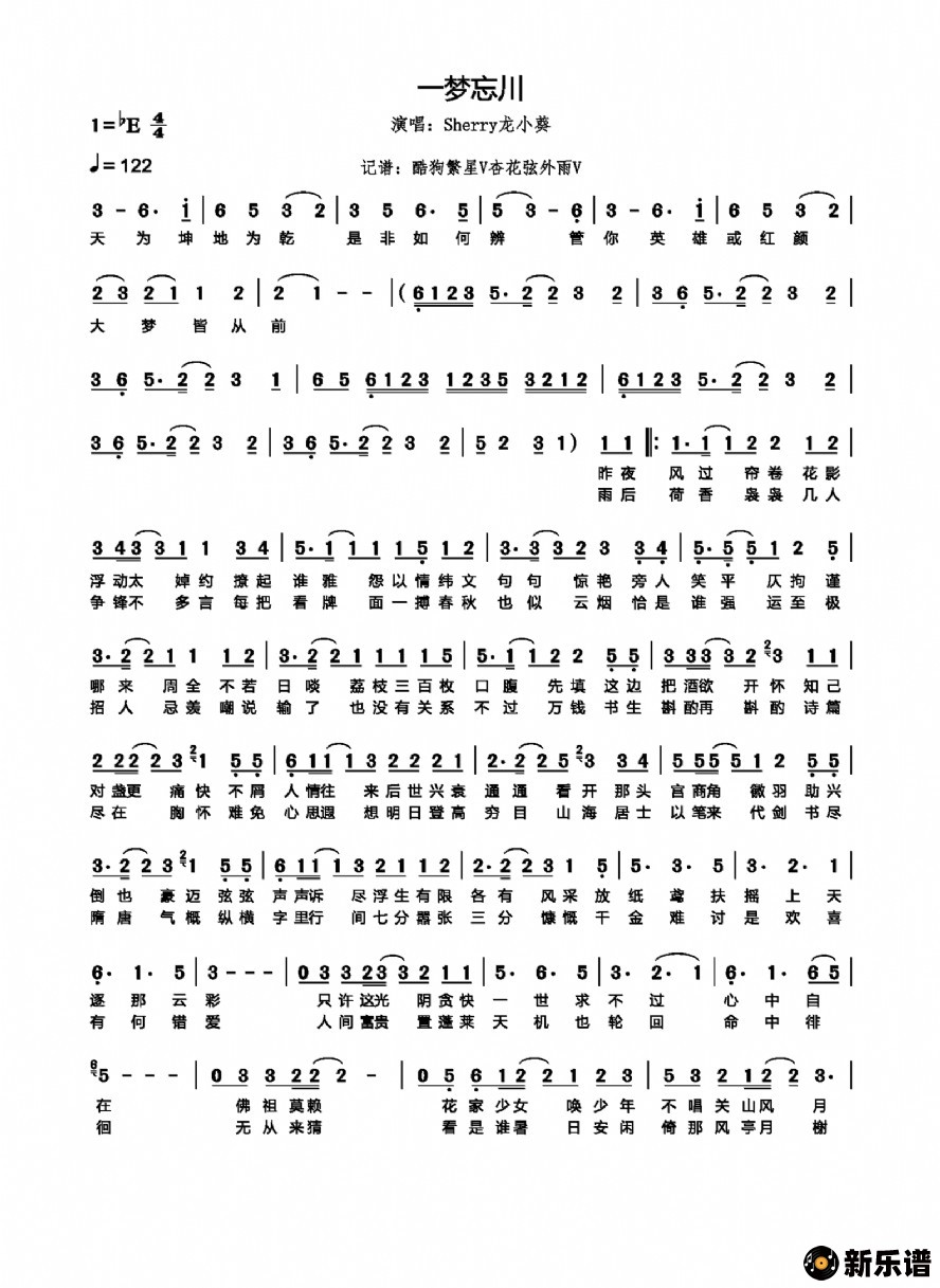 一梦忘川/sherry龙小葵 相关曲谱