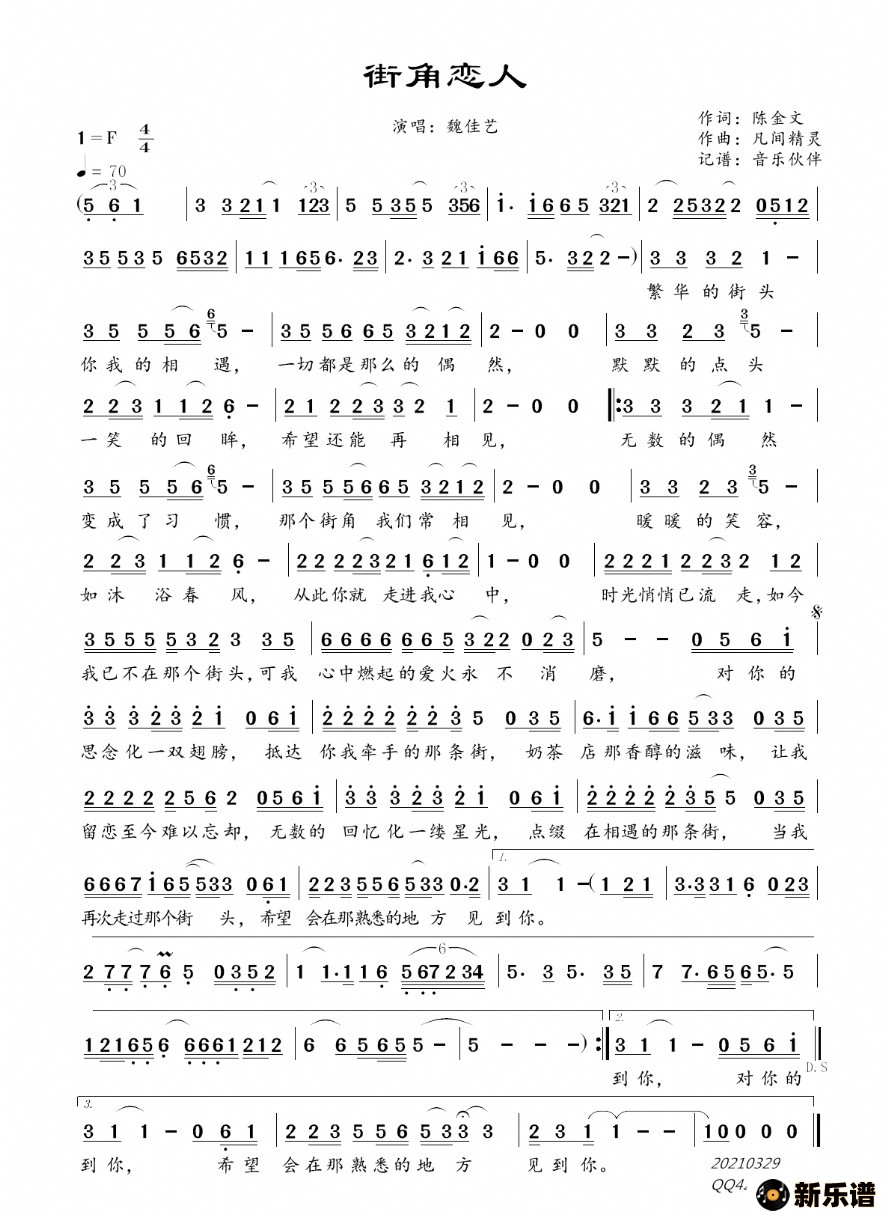 《街角恋人》简谱 魏佳艺-音乐伙伴制谱