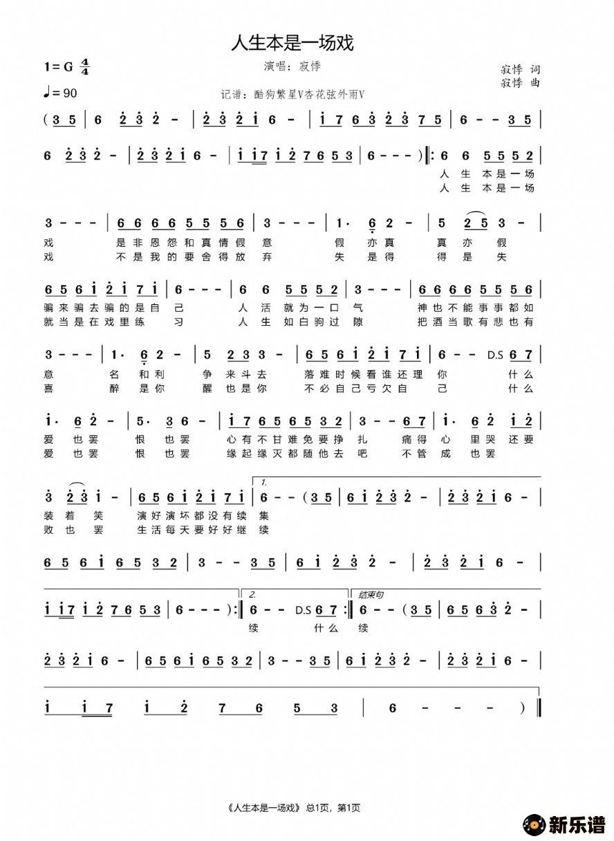 寂悸演唱的人生本是一场戏歌词,人生本是一场戏简谱.