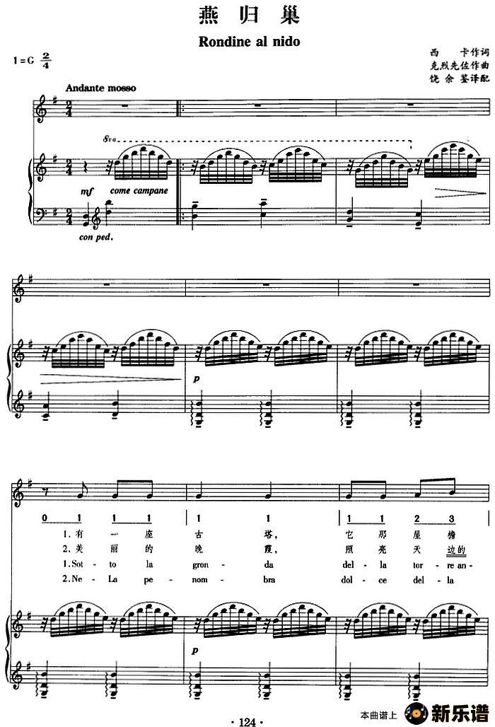 作词:西卡 作曲:克烈先佐作曲 饶余鉴译配(正谱、线简谱、中外文对照版)