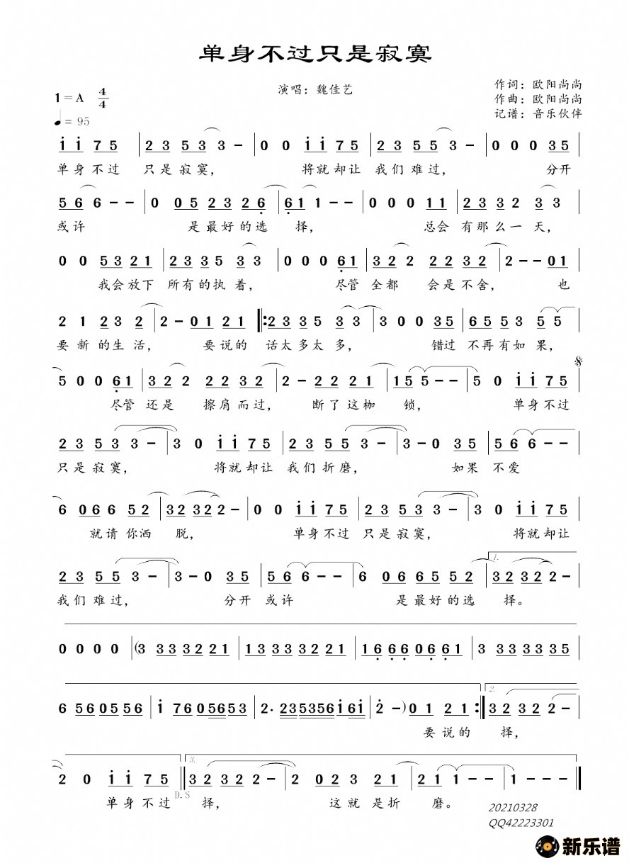 魏佳艺演唱的单身不过只是寂寞歌词,单身不过只是寂寞简谱.