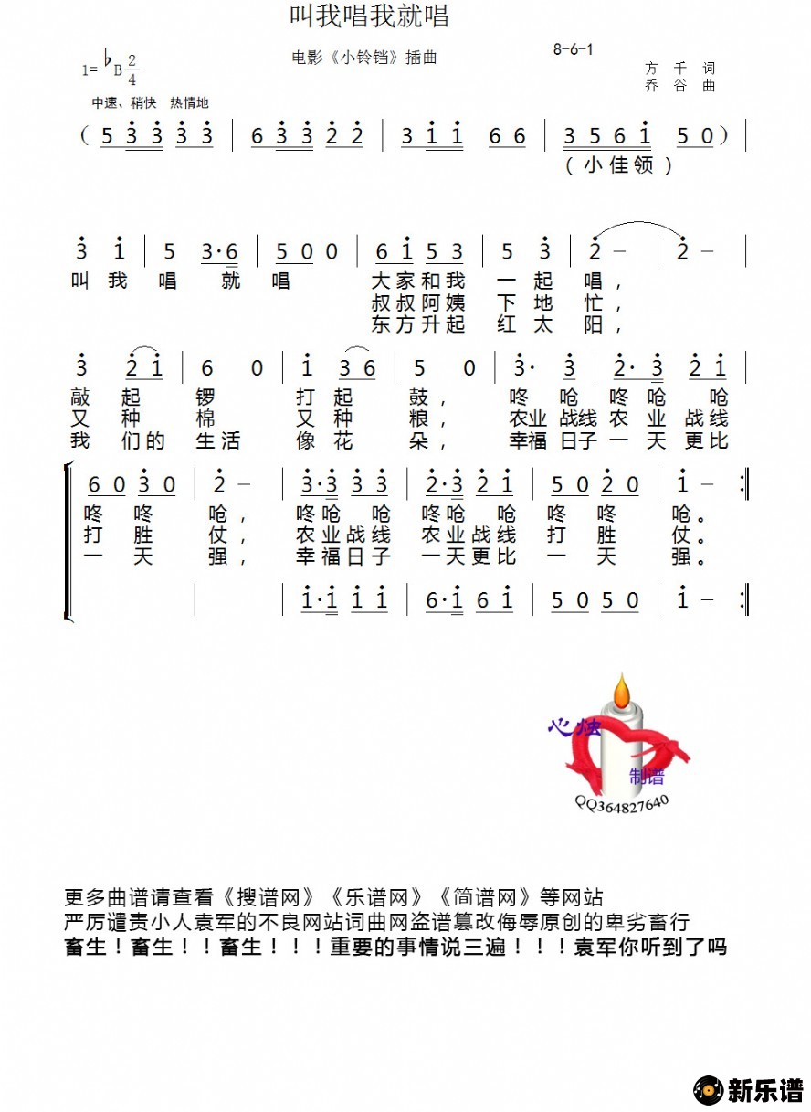 《叫我唱我就唱》简谱 佚名-心烛制谱
