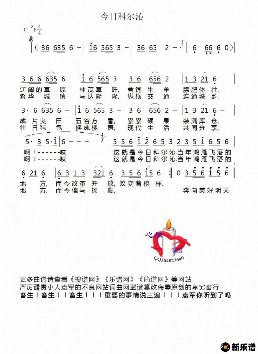 佚名演唱的今日科尔沁歌词,今日科尔沁简谱.