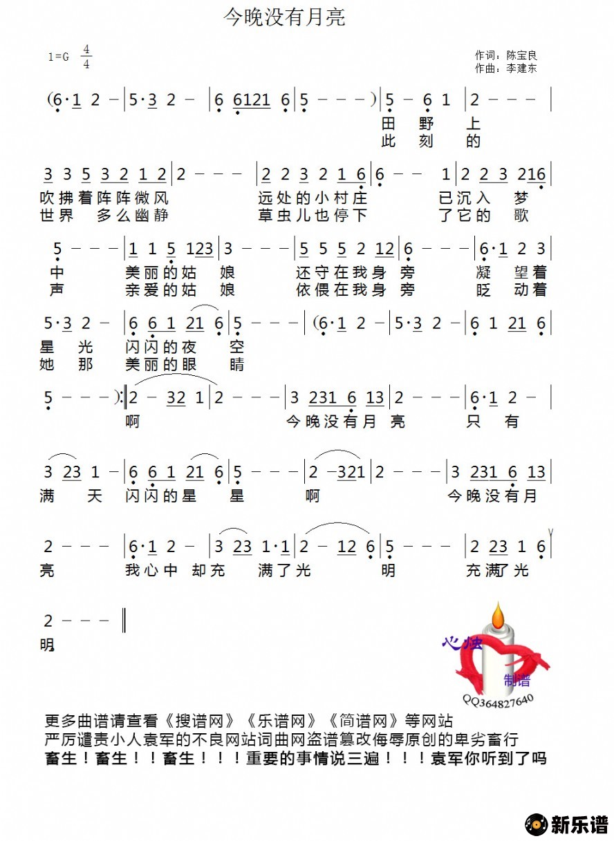 《今晚没有月亮》简谱 佚名-心烛制谱
