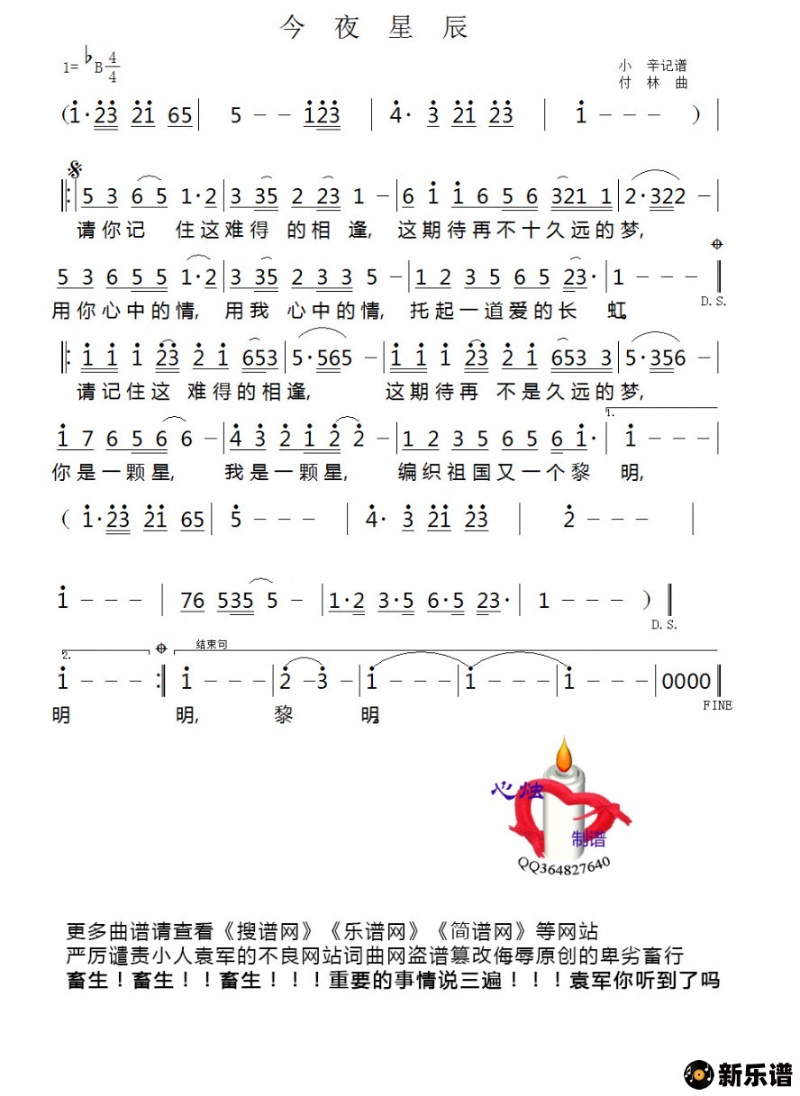《今夜星辰》简谱 佚名-心烛制谱