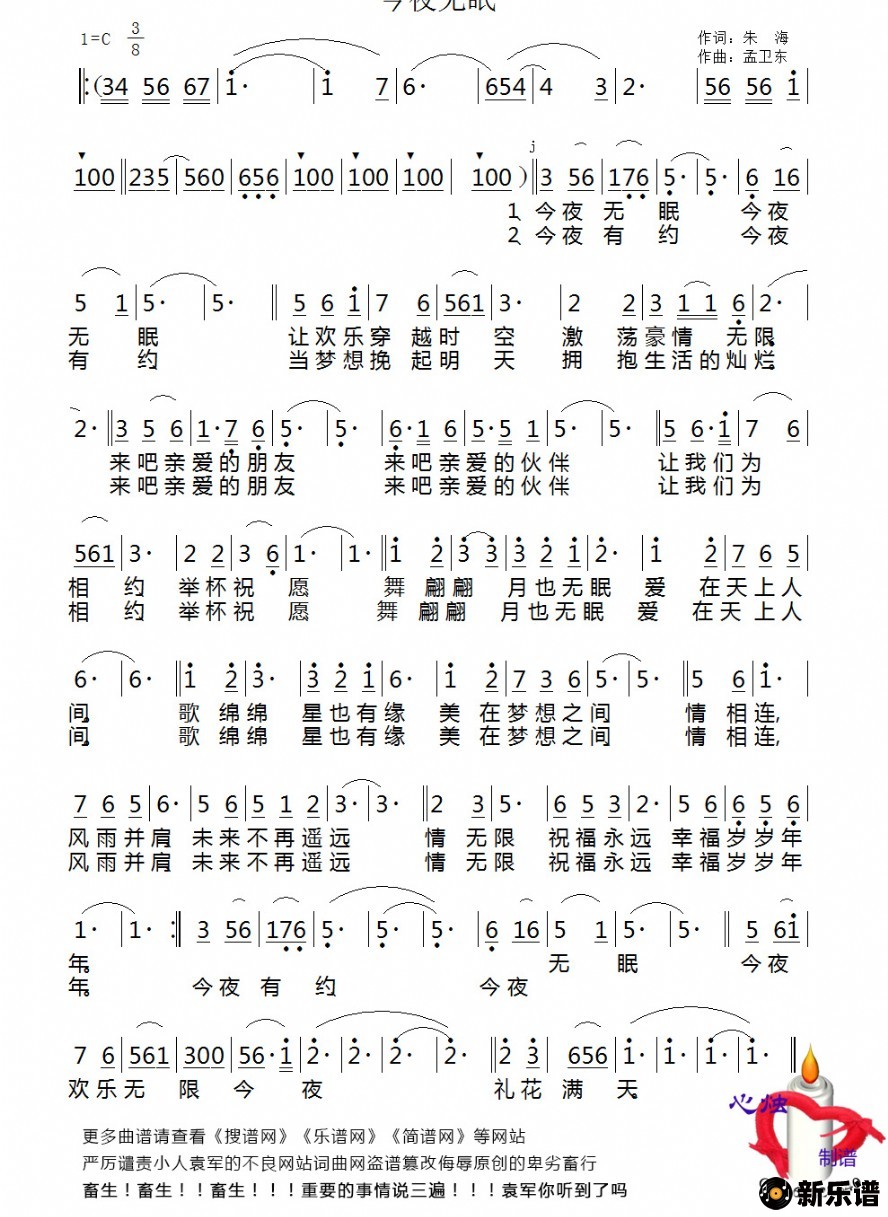 《今夜无眠》简谱 周冰倩-心烛制谱