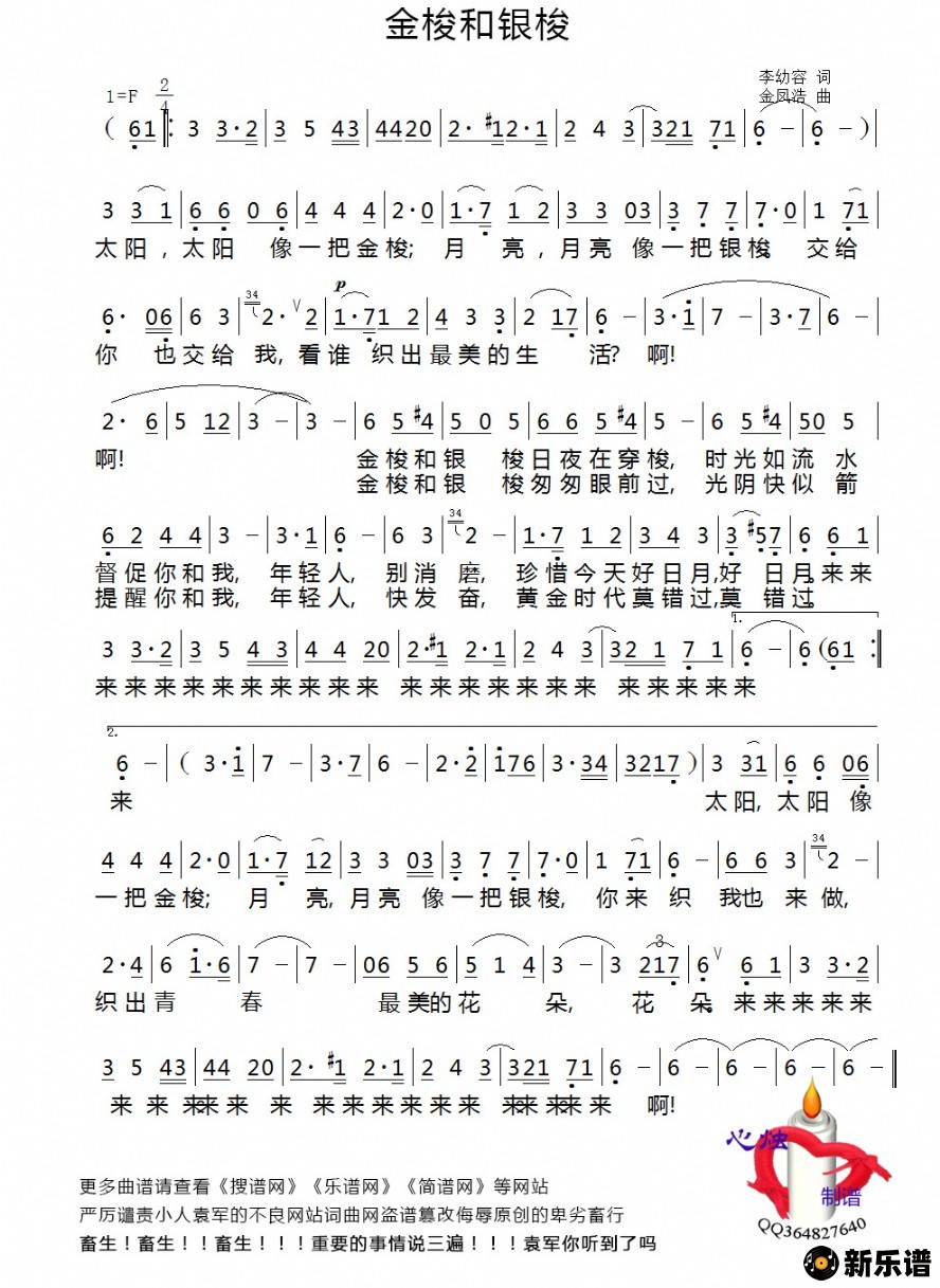 金曼演唱的金梭和银梭歌词,金梭和银梭简谱.