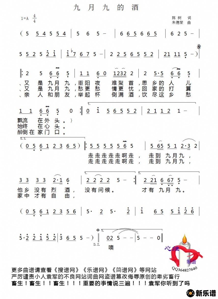 《九月九的酒》简谱 陈少华-心烛制谱