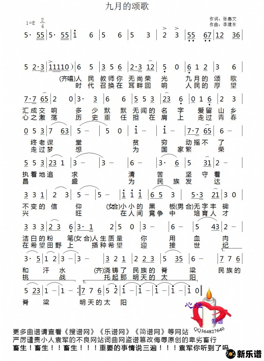 佚名演唱的九月的颂歌歌词,九月的颂歌简谱.