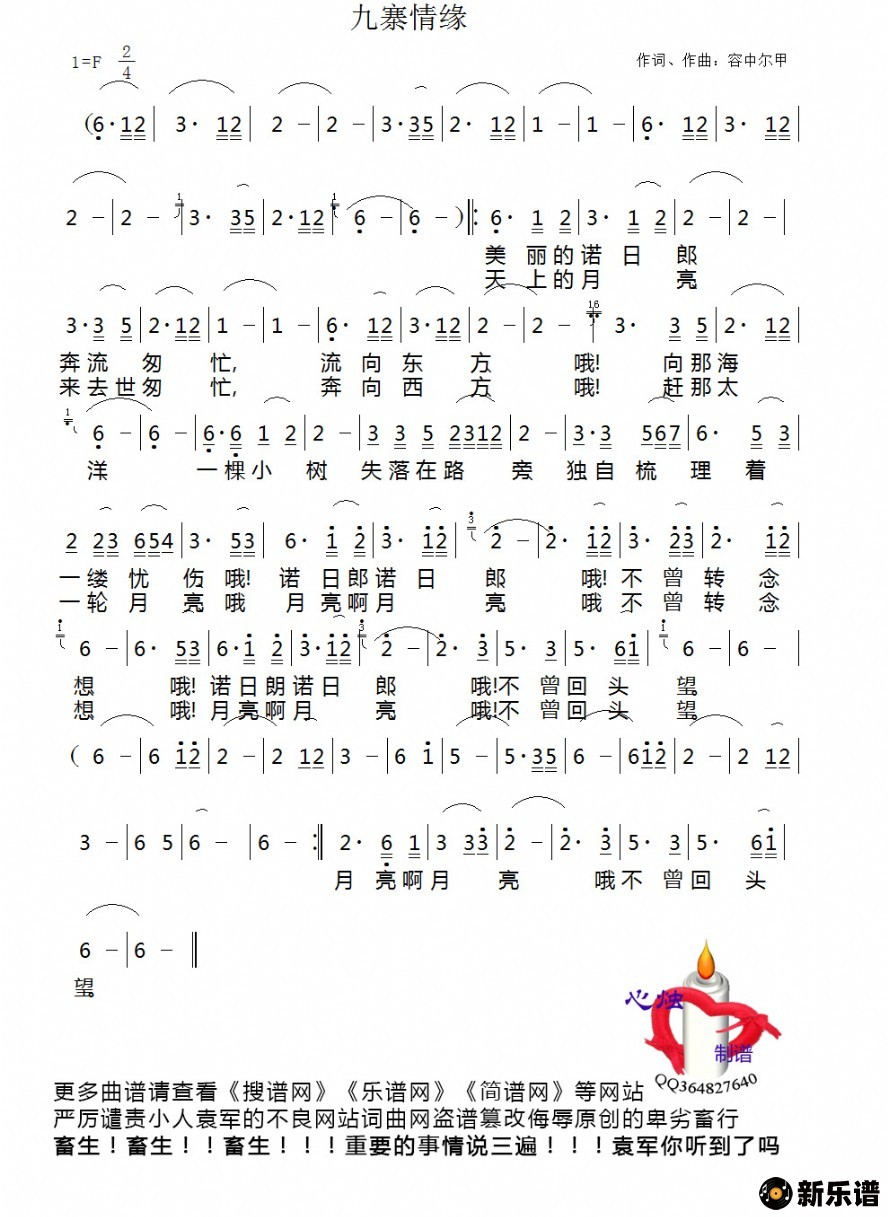 《九寨情缘》简谱 容中尔甲-心烛制谱