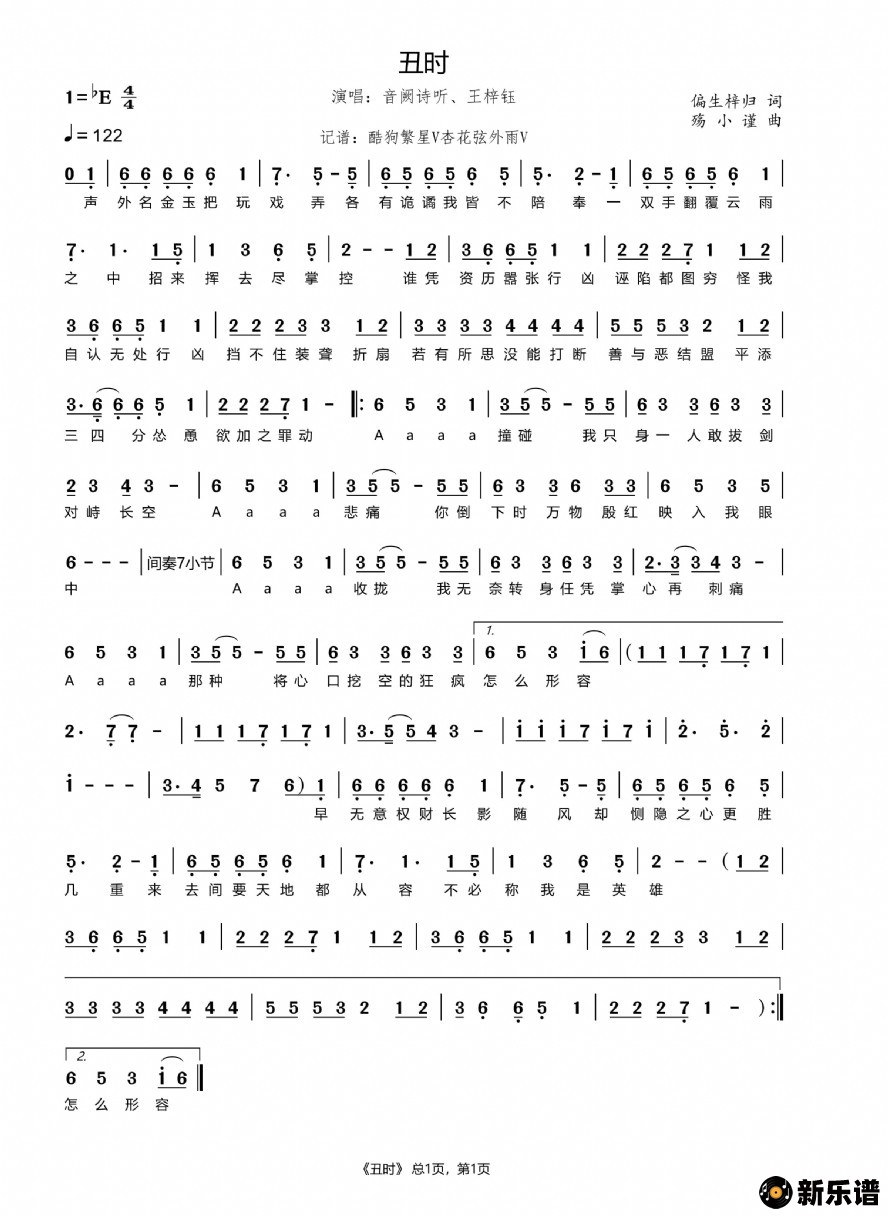 音阙诗听演唱的丑时歌词,丑时简谱.
