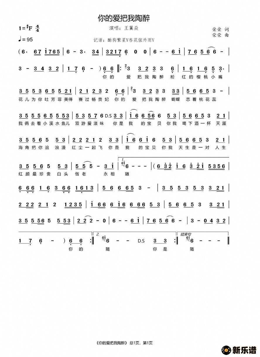 《你的爱把我陶醉》简谱 王翼焱-杏花弦外雨制谱