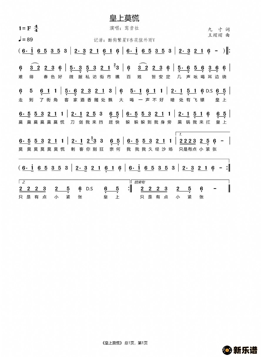 鸾音社演唱的皇上莫慌歌词,皇上莫慌简谱.