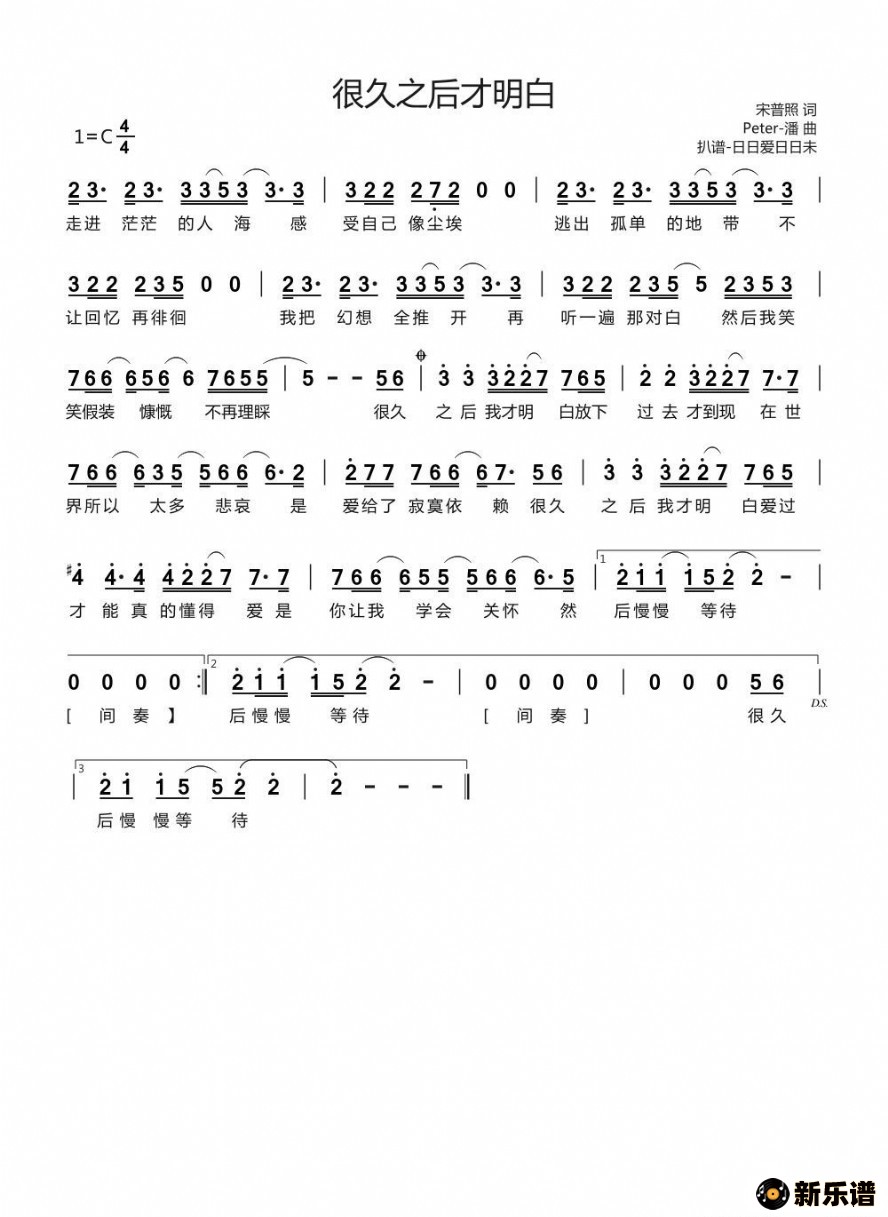 《很久之后才明白》简谱 李行亮-日日爱日日未制谱