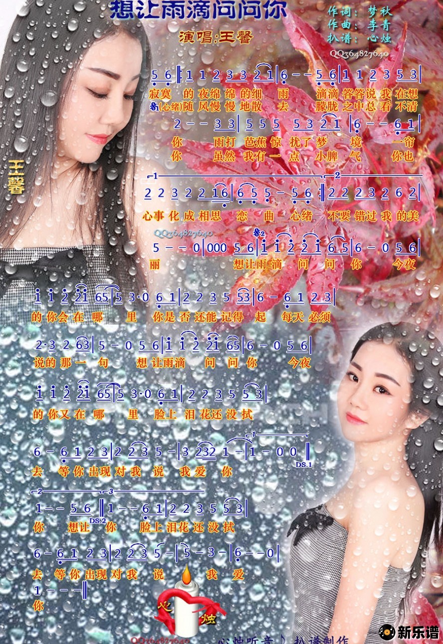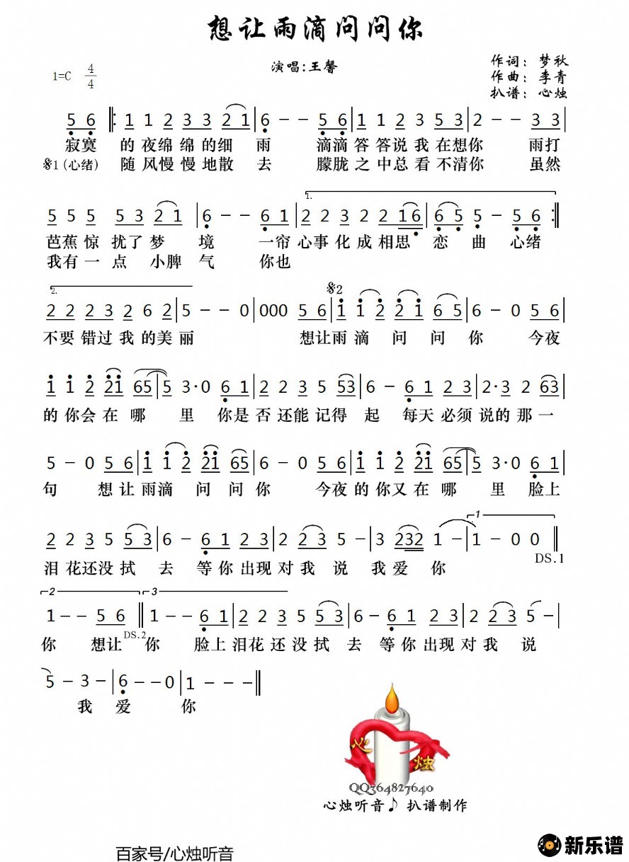 《想让雨滴问问你》简谱 王馨-心烛制谱