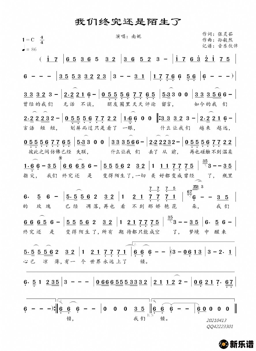 《我们究竟还是陌生了》简谱 南妮-音乐伙伴制谱