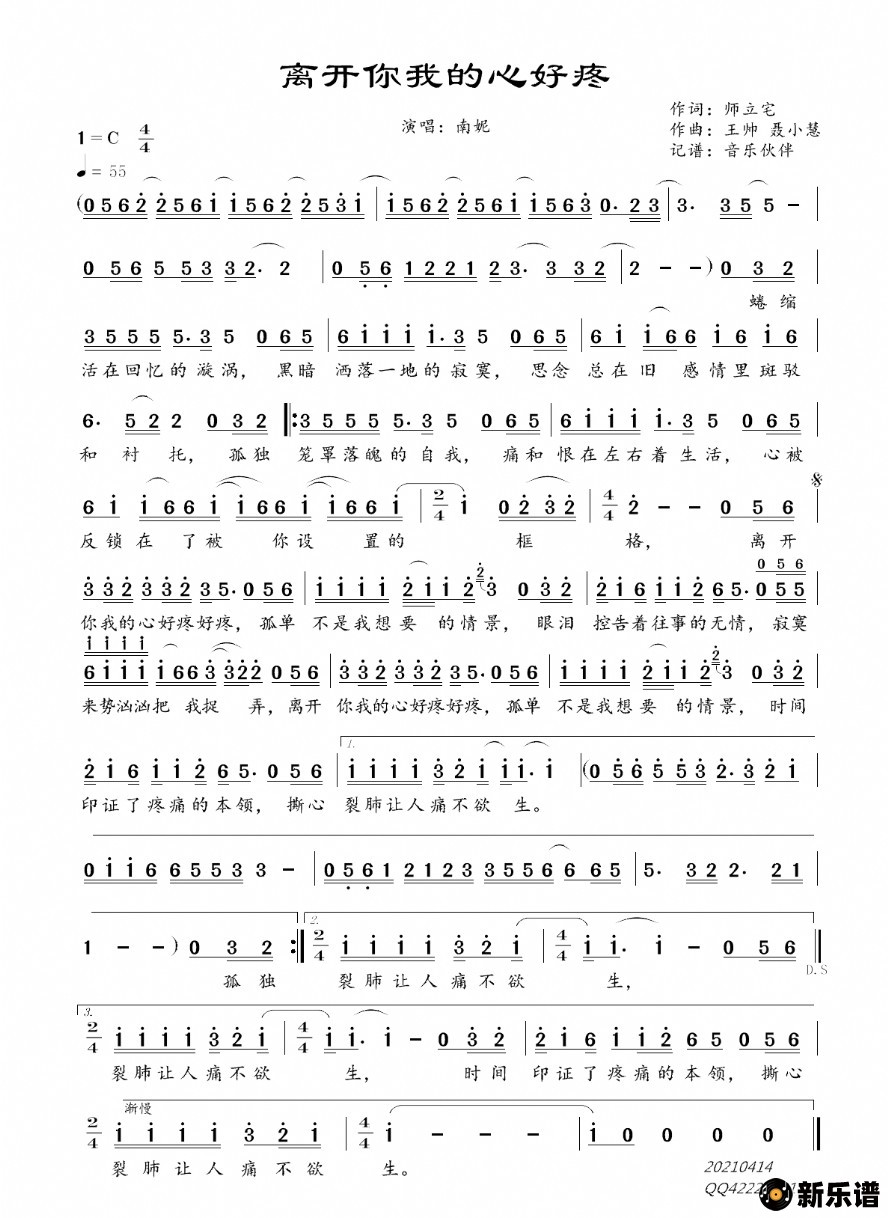南妮演唱的离开你我的心好疼歌词,离开你我的心好疼简谱.