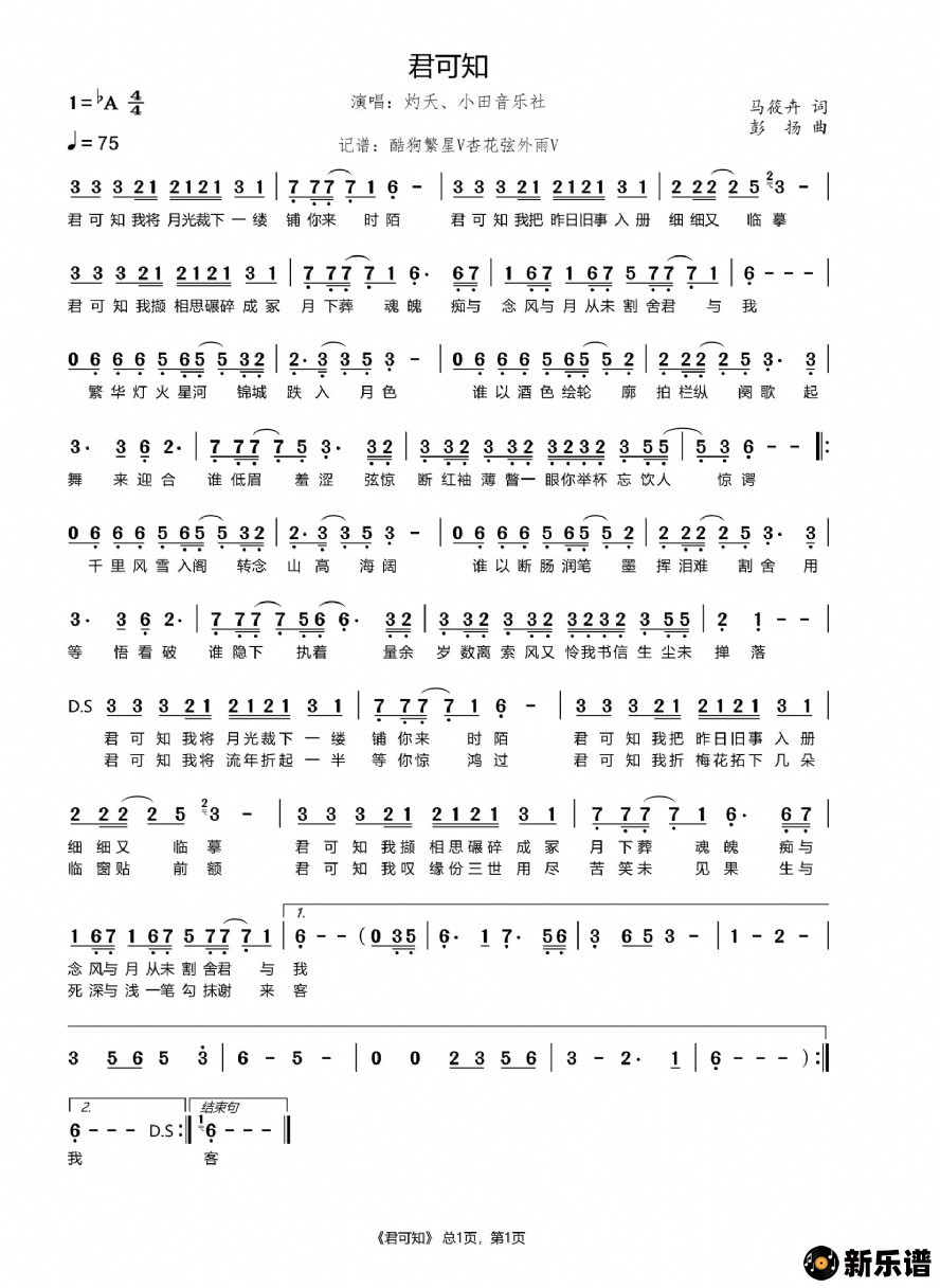 《君可知》简谱 灼夭-杏花弦外雨制谱