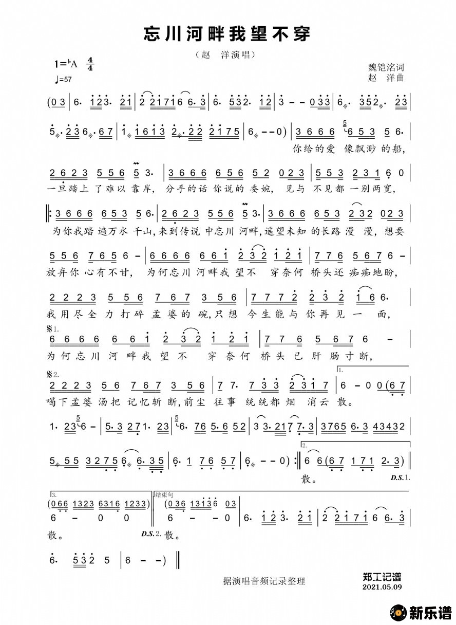 《忘川河畔我望不穿》简谱 赵洋-郑工制谱