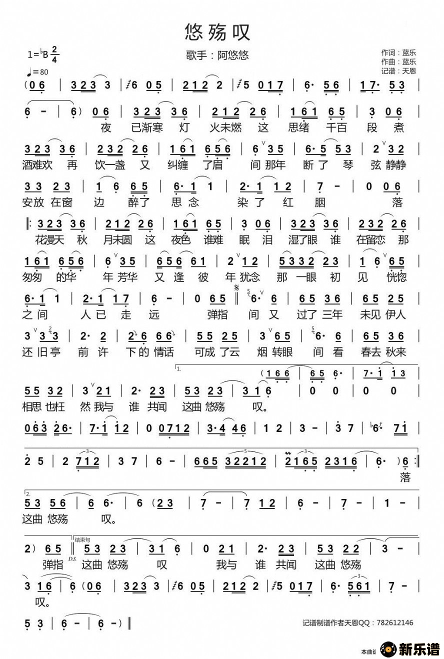阿悠悠演唱的悠殇叹歌词,悠殇叹简谱.