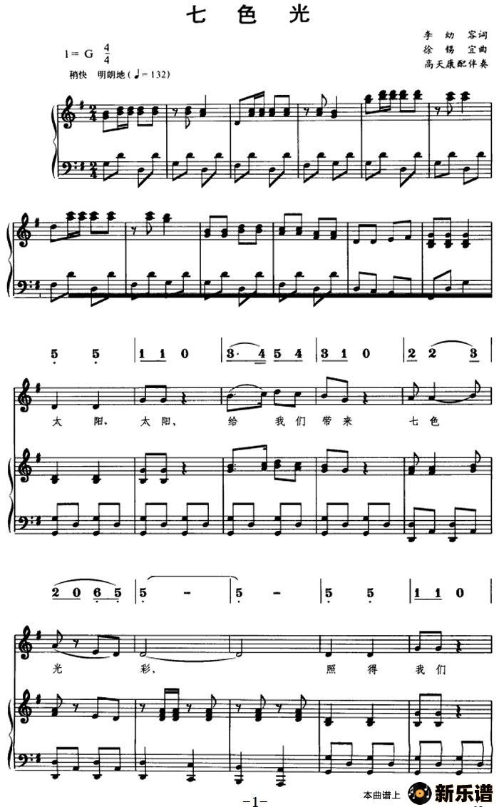 作词:李幼容 作曲:徐锡宜曲 高天康配伴奏(线简谱对照、正谱)