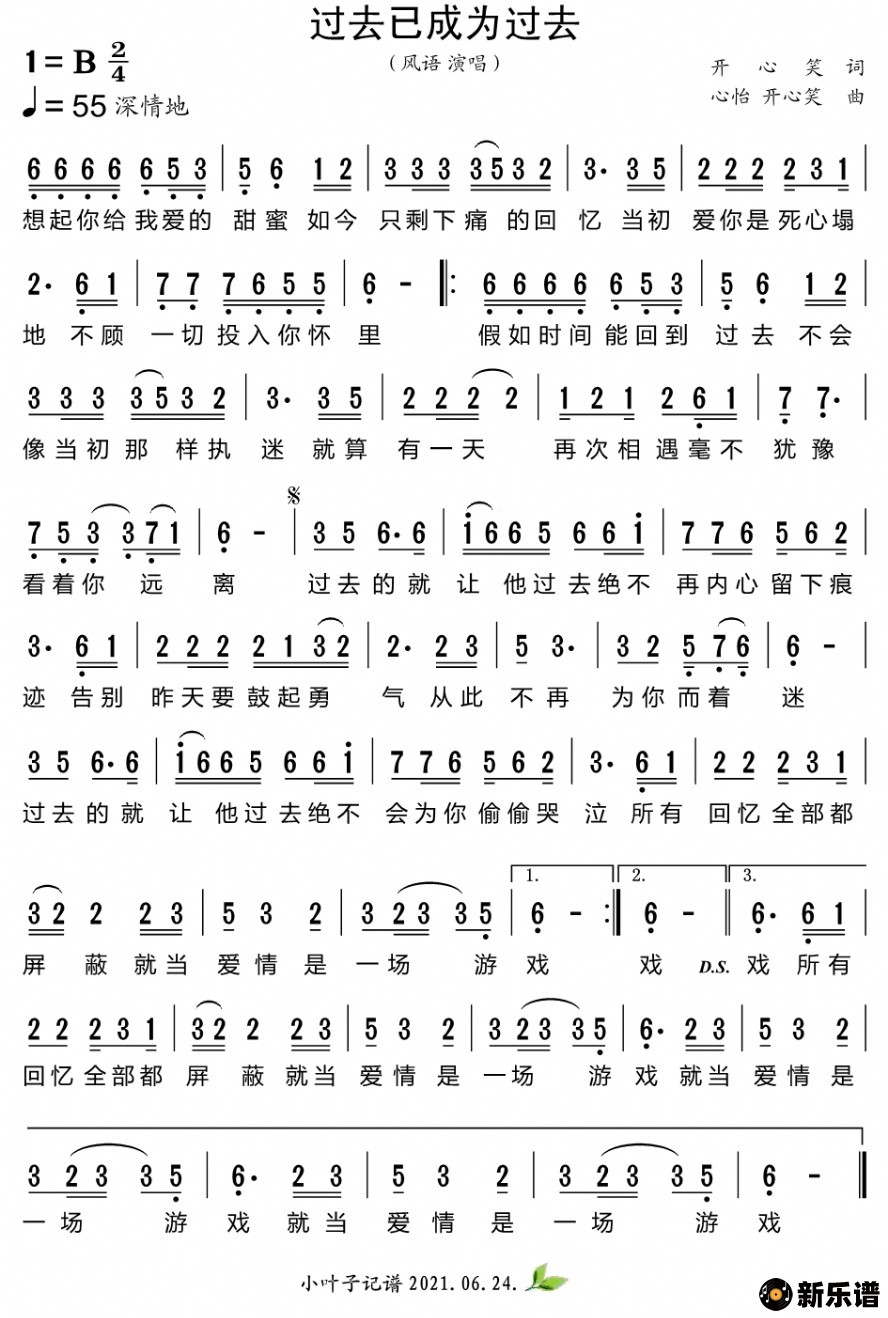 《过去已成为过去》简谱 风语-小叶子制谱