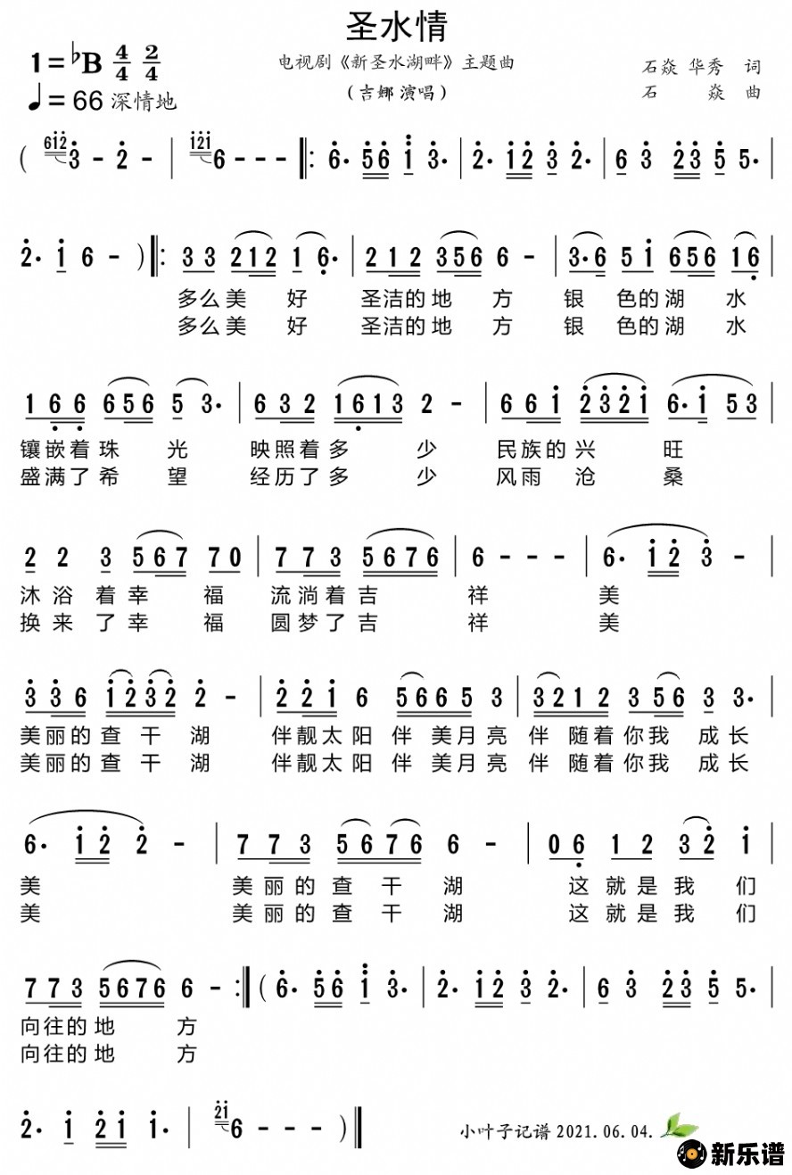 《圣水情(电视剧《新圣水湖畔》主题曲)》简谱 吉娜-小叶子制谱