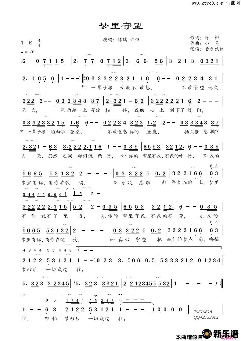 《梦里守望》简谱 陈瑞-音乐伙伴制谱