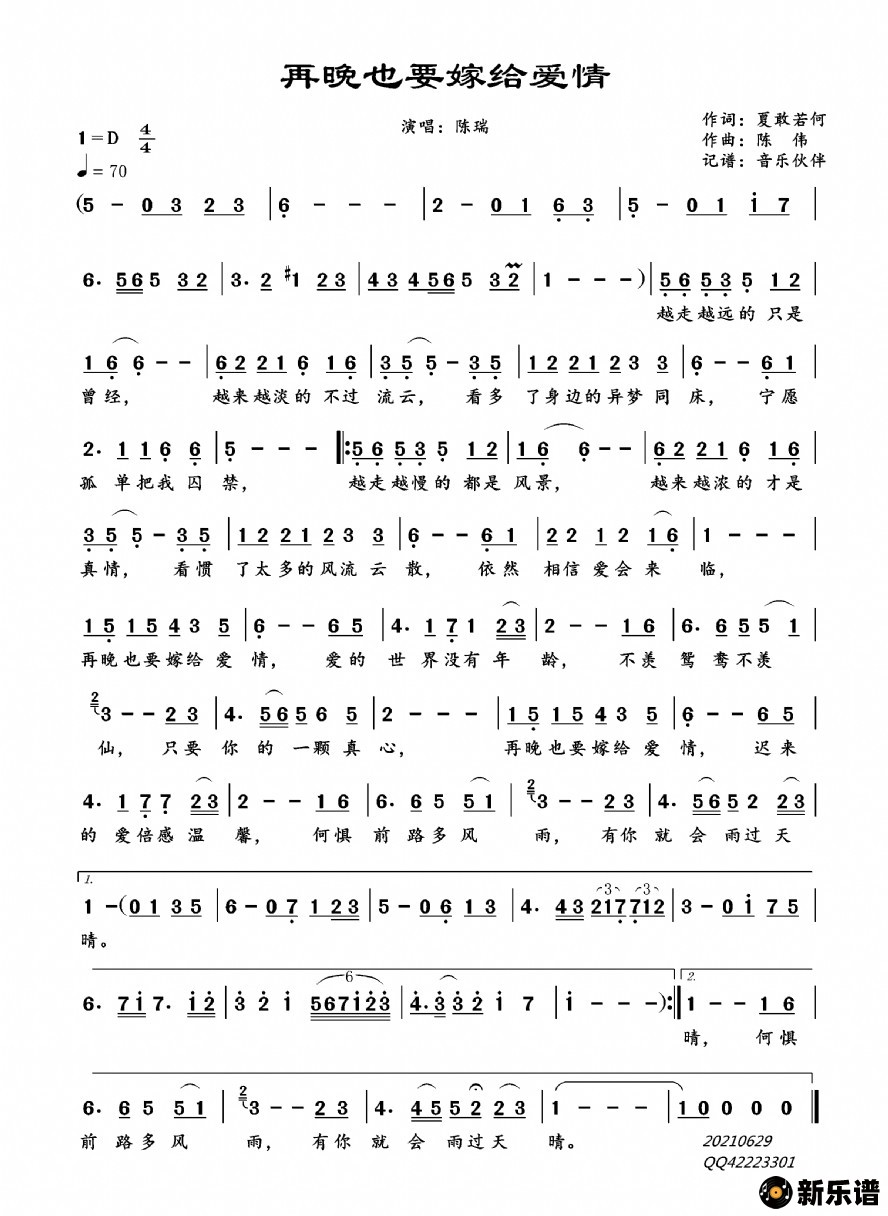 再晚也要嫁给爱情/陈瑞 相关曲谱