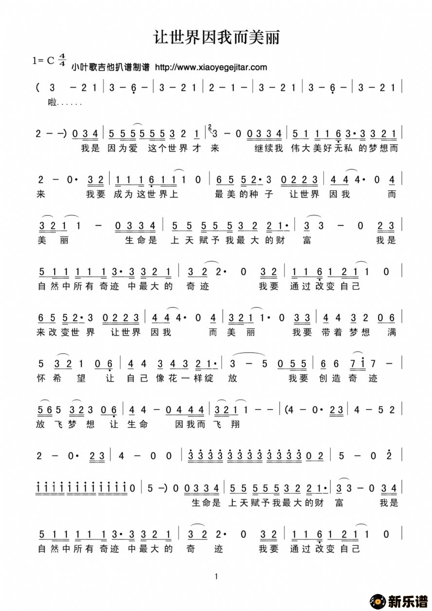 佚名演唱的让世界因我而美丽歌词,让世界因我而美丽简谱.