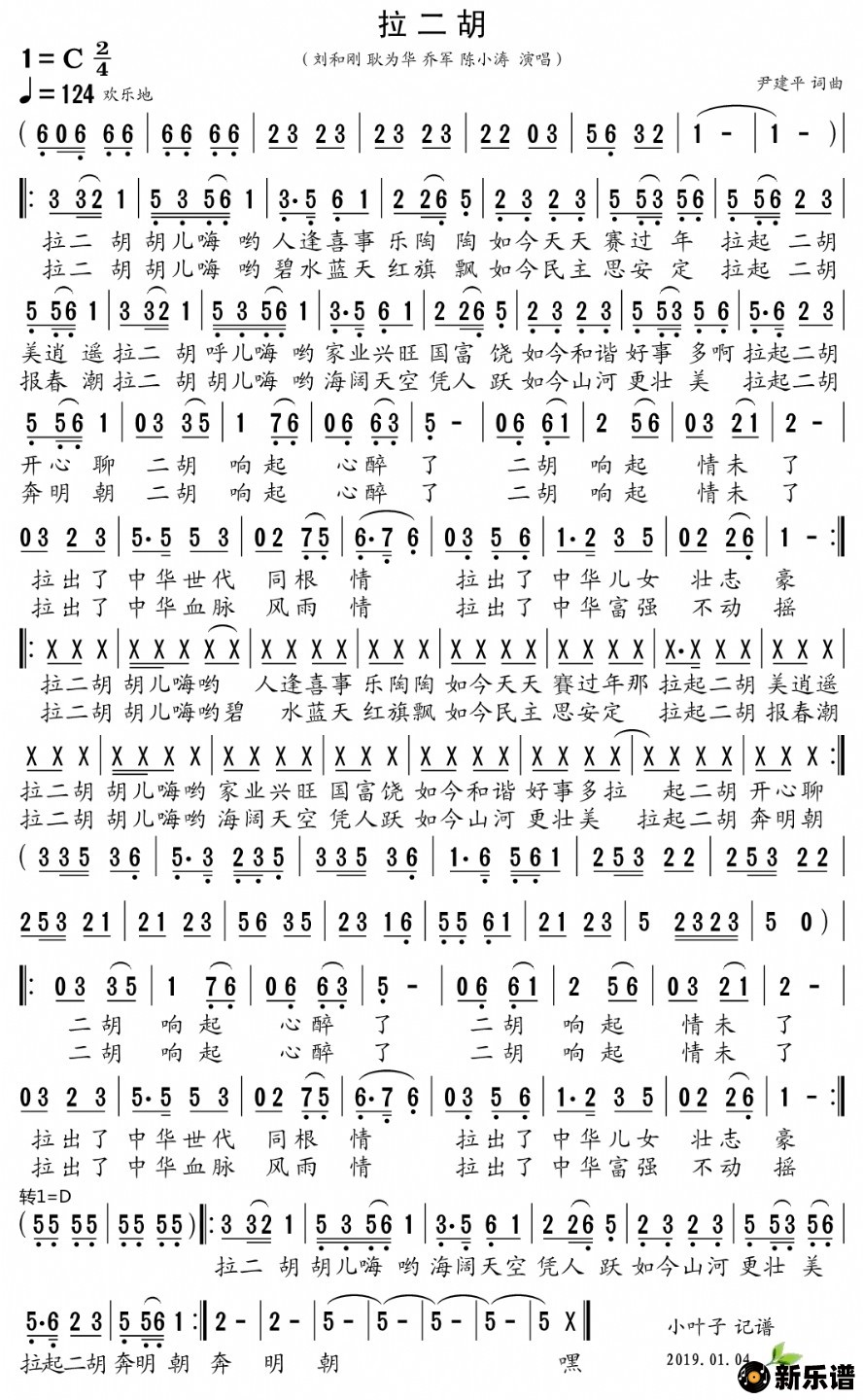 《拉二胡》简谱 刘和刚、耿为华、乔军、陈小涛-小叶子制谱