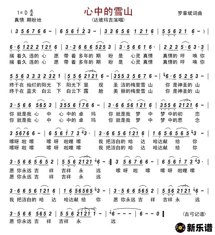 达坡玛吉演唱的心中的雪山歌词,心中的雪山简谱.